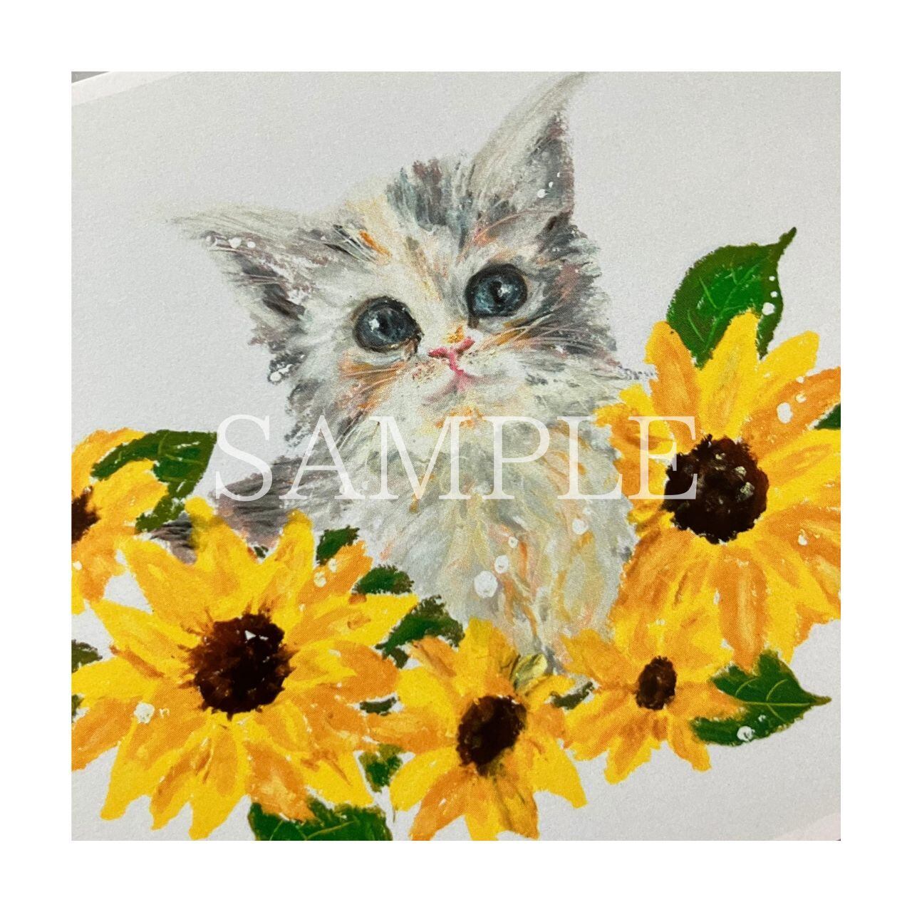 お部屋に彩りを加え、猫好きな方にも、ひまわりの明るい雰囲気を求める方にもぴったり。